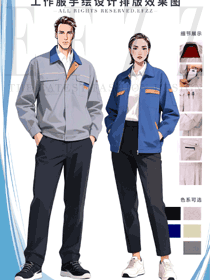 本套男女工作服以 “浅灰深灰营造雅致专业感,撞色细节提升识别与活力” 为核心设计理念。色彩上,浅灰与深灰为主基调,柔和沉稳且耐脏易打理,契合工业、服务等多场景的专业视觉需求;橙色、深色等撞色细节(如领口、口袋边缘)打破色调单调,既强化功能区域识别性,又为工装注入时尚活力。款式设计聚焦 “作业便捷与身形适配”:采用利落的夹克版型,剪裁贴合人体工学,保障作业时的动作自由度;多口袋布局科学分区,便于工具、随身物品分类收纳,提升工作效率。男女款在保持整体风格统一(同款结构、色彩体系)的基础上,通过色调深浅(男款浅灰为主搭配撞色,女款深灰更显内敛)与版型细节(女款更修身,男款兼顾宽松舒适)实现性别友好适配。面料选用耐磨、抗皱的功能性材质,可有效抵御作业环境中的摩擦与褶皱,让穿着者在专业作业时,既能以雅致整洁的形象示人,又能享受舒适便捷的穿着体验。