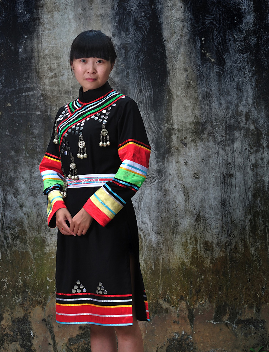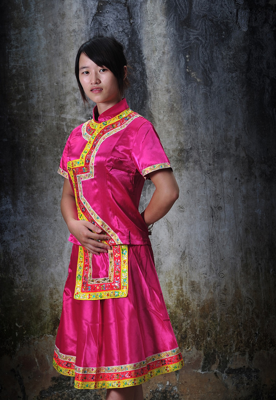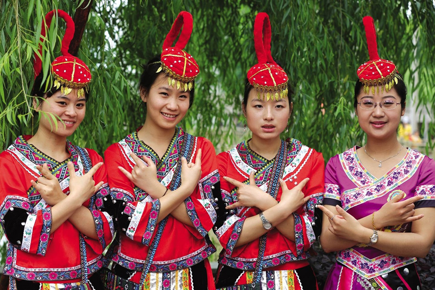 畲族男女服饰基本类同于当地汉人。但人口相对集中的闽浙两地畲族服饰尚存一定的民族特色,尤以闽省畲家妇女特色显著,并因地域、婚姻状态而纷呈异彩。闽东北畲族妇女发式称为"凤凰髻",16岁前少女用红绒缠辫子,盘绕头上,额前留"留海",畲族称为"布妮头"。成年已婚妇女发式畲族称为"山哈娜头",随地域不同略有差异。流行于闽侯,福州,古田,连江,罗源和宁德南路飞鸾一带发式称为"凤头髻"。流行于福安和宁德大部分区域的发式称为"凤身髻",流行于福鼎和霞浦西路发式称为"凤尾式"。闽南,闽西有的畲村妇女发式也不同于当地汉人,如漳平,华安,漳浦,长泰等县畲族妇女发式为"龙船髻"。闽北畲族妇女以百根银簪并配以红绳,料珠,装成"扇形髻"。浙西南畲族妇女发饰称为"笄"。