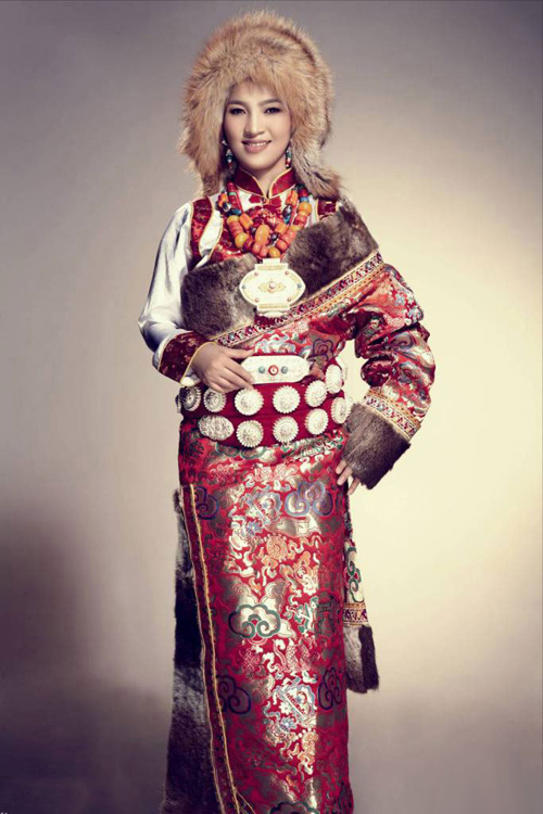 头戴狐皮帽,身穿貂皮镶边的氆氇或毛呢楚巴,腰插长刀,身佩挂护身符和长短枪,倍显武士英姿勃发的阳刚之美。