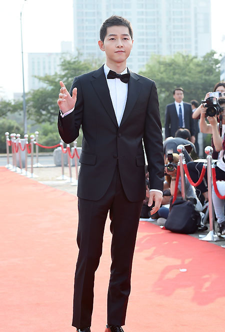在汝矣岛KBS大楼举行“首尔电视剧大赏2016”红毯仪式,宋仲基亮相,身穿西装系领结造型清爽。宋仲基,1985年9月19日出生于韩国大田广域市,韩国演员、主持人。2008年出演电影《霜花店》进入演艺圈。2009年在音乐节目Music Bank中担任主持,后在艺能节目《Running man》中担任固定嘉宾。2010年出演电视剧《成均馆绯闻》具龙河一角,获得KBS演技大赏最佳人气奖。2011年在电视剧《树大根深》中饰演青年世宗,获得SBS演技大赏PD奖。2012年接拍KBS水木剧《善良的男人》,在KBS演技大赏中获得最佳男演员奖、网络人气奖及最佳情侣奖。同年主演的电影《狼族少年》上映,正片票房达665万观影人次,累计突破700万观影人次,凭此片获得第49届百想艺术大赏电影部门最佳男演员提名。本文由efzz中国制服设计网www.efzz.cn转载。