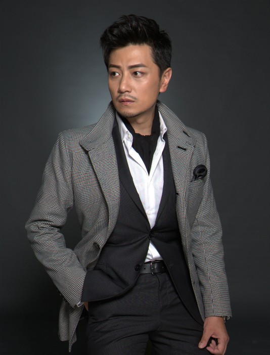 演员张洪睿身着黑色西服套装,尽显熟男魅力