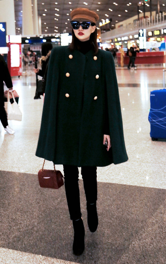 近日,演员徐璐曝光一组全新机场街拍图。徐璐私服搭配帅出新高度,秀出好身材演绎行走的衣架。在曝光的街拍中徐璐身穿墨绿色斗篷军装大衣外套搭配焦糖色帽子,展现洒脱不羁的风格。简约廓形彰显潇洒率性,利落剪裁英气逼人。大红唇是整个造型的点睛之笔,将甜美与帅气完美融合。而酷帅黑墨镜的点缀又让整个look看起来更加别致,整体造型尽显好衣品,在潇洒帅气的造型下透露时髦复古气息。对演员徐璐的人物评价,从《红楼梦》里柔弱乖巧的薛宝琴,到《甄嬛传》里柔韧勇敢的甄玉娆,再到《圣天门口》里天真执著的雪柠,徐璐在影视道路上一路走来,她跟李少红、郑晓龙、张黎等导演学戏,与孙俪、蔡少芬这样的前辈演员合作,很幸运,也很努力,演技也在由青涩逐渐转为成熟。本文由中国制服设计网转载。