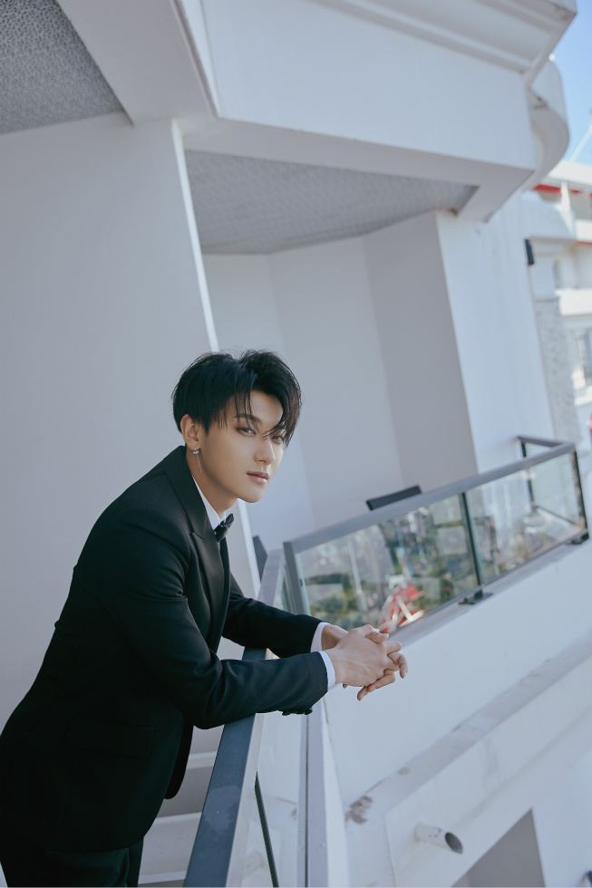 黄子韬黑色粒纹西装制服,俊朗帅气